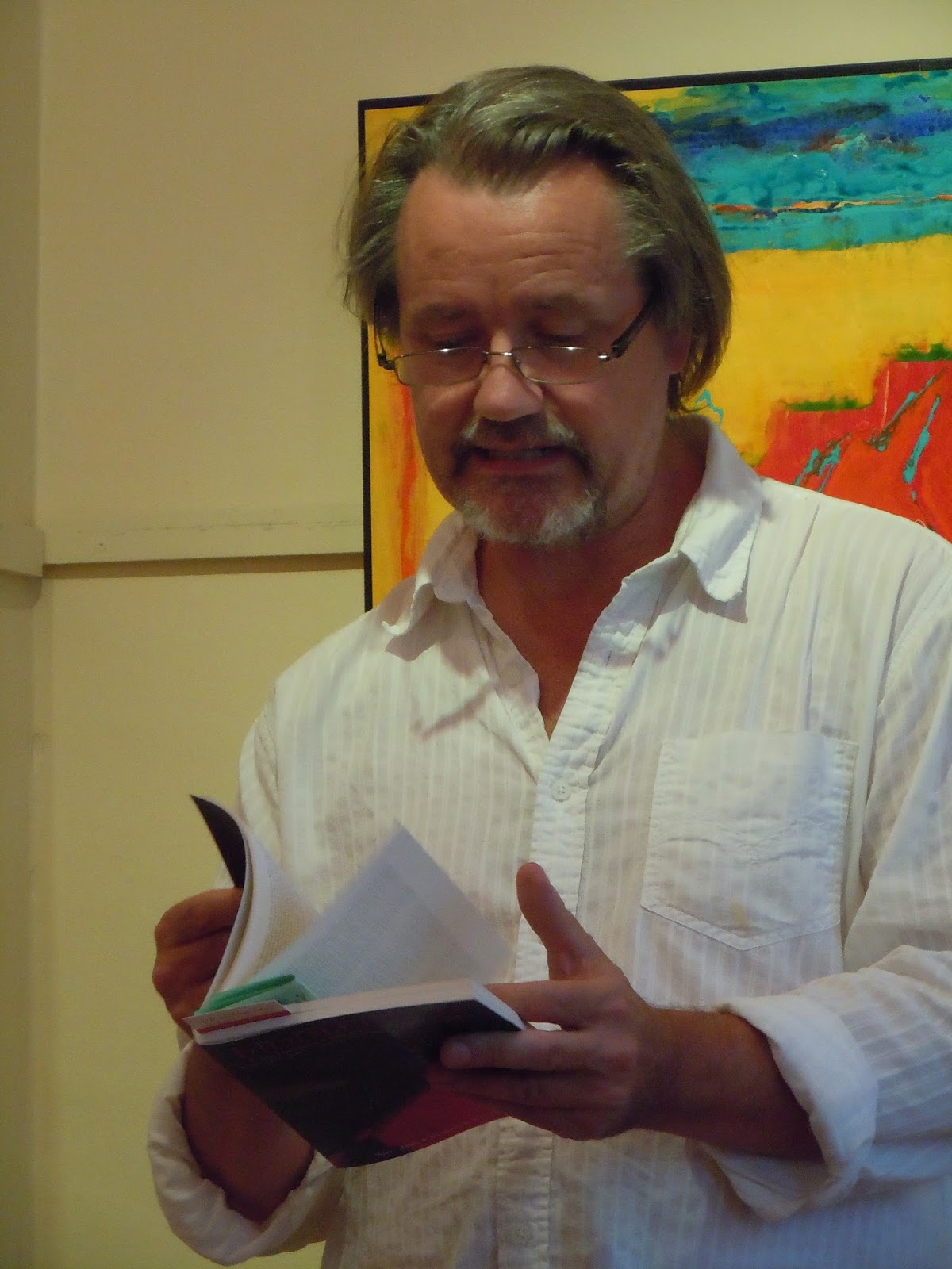 | Fiction co-editor Mark Jarman hosted the launch. Here, he reads from Eoin McNamee's story |